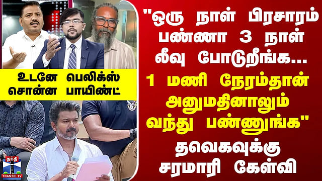 TVK "ஒரு நாள் பிரசாரம் பண்ணா 3 நாள் லீவு போடுறீங்க... 1 மணி நேரம்தான் அனுமதினாலும் வந்து பண்ணுங்க"