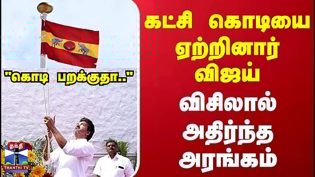 கட்சி கொடியை ஏற்றினார் விஜய் விசிலால் அதிர்ந்த அரங்கம்