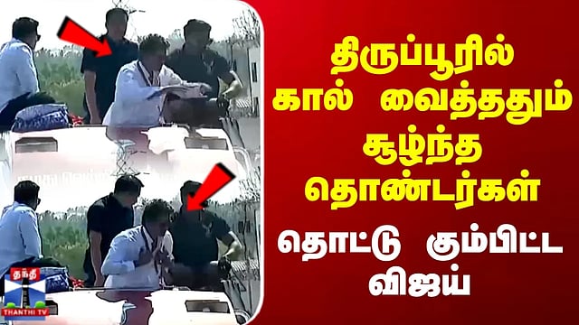 திருப்பூரில் கால் வைத்ததும் சூழ்ந்த தொண்டர்கள்..தொட்டு கும்பிட்ட விஜய்