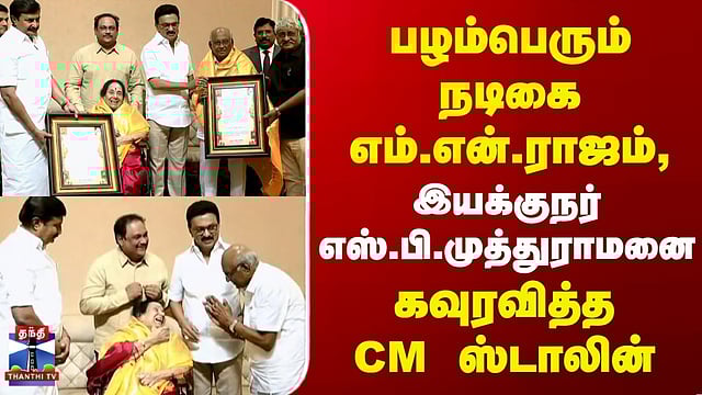 CM Stalin | Award | பழம்பெரும் நடிகை எம்.என்.ராஜம், இயக்குநர் எஸ்.பி.முத்துராமனை கவுரவித்த CM ஸ்டாலின் #CMStalin #MNRajam #SPMuthuraman #award #thanthitv பழம்பெரும் நடிகை எம்.என்.ராஜம்-க்கு விருது வழங்கினார் முதலமைச்சர் எம்.என்.ராஜம்-க்கு 2024ம் ஆண்டிற்கான கலைஞர் நினைவு கலைத்துறை வித்தகர் விருது இயக்குநர் எஸ்.பி.முத்துராமனுக்கு கலைஞர் நினைவு கலைத்துறை வித்தகர் விருது முதலமைச்சர் ஸ்டாலின் சென்னை தலைமைச் செயலகத்தில இருந்தபடி, பழம்பெரும் நடிகை எம் என் ராஜம்-க்கு 2024-ஆம் ஆண்டிற்கான கலைஞர் நினைவு கலைத்துறை வித்தகர் விருதினையும், மூத்த திரைப்பட இயக்குநர்.எஸ்.பி. முத்துராமனுக்கு 2025-ஆம் ஆண்டிற்கான கலைஞர் நினைவு கலைத்துறை வித்தகர் விருதினையும் வழங்கி சிறப்பிக்கிறார்கள்....
