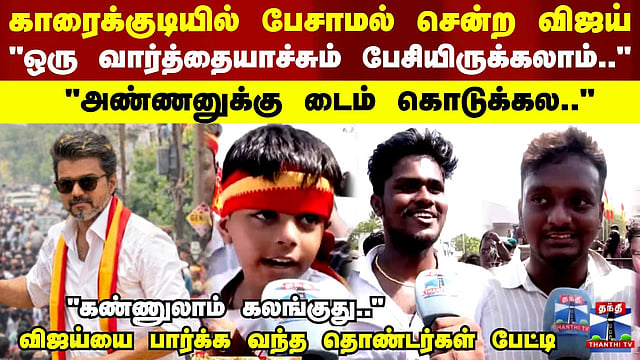 காரைக்குடியில் பேசாமல் சென்ற விஜய்.. விஜய்யை பார்க்க வந்த தொண்டர்கள் பேட்டி #karaikudi #tvkvijay #vijay #vijaycampaign #tvk #thanthitv