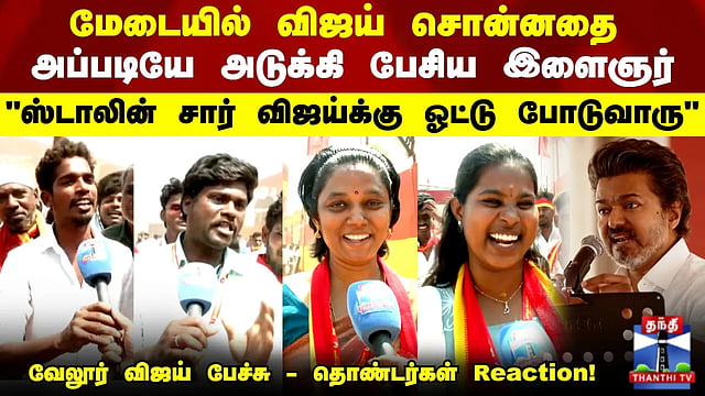Vijay Vellore Meeting | மேடையில் விஜய் சொன்னதை அப்படியே அடுக்கி பேசிய இளைஞர்.. வேலூர் விஜய் பேச்சு - தொண்டர்கள் Reaction!