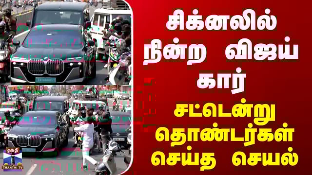 சிக்னலில் நின்ற விஜய் கார்.. சட்டென்று தொண்டர்கள் செய்த செயல் #tvk #tvkvijay #tvkcampagin #tnpolitics #tnelection2026 #tnpolitics #thanthitv சிக்னலில் நின்ற விஜய் கார் மீது மலர்களை தூவிய தவெக தொண்டர்கள் தவெக தலைவர் விஜய் கன்னியாகுமாரி ரோட்ஷோவிற்கு அவரது இல்லத்திலிருந்து புறப்பட்ட போது, சிக்னலில் நின்ற அவரது கார் மீது தவெக தொண்டர்கள் மலர்களை தூவி உற்சாகத்தை வெளிப்படுத்தினர். இந்த செயலை சிக்னலில் நின்ற பொதுமக்கள் வியந்து பார்த்தப்படி நின்றனர்