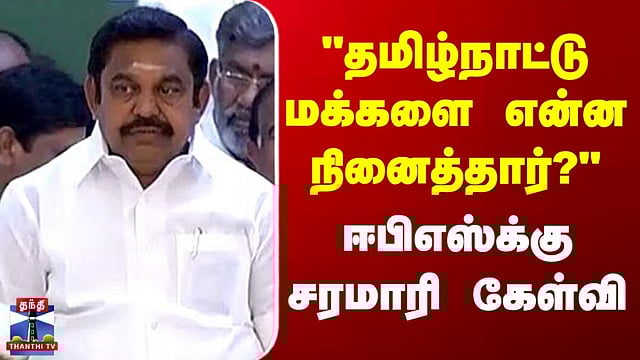 #EPS | #ADMK | #TKSElangovan | #DMK | #TNPolitics | #ThanthiTV EPS | TKS Elangovan | "தமிழ்நாட்டு மக்களை என்ன நினைத்தார்?" - ஈபிஎஸ்க்கு சரமாரி கேள்வி பத்தாயிரம் ரூபாய் உதவித்தொகை கொடுக்கப்படும் என்ற அதிமுகவின் தேர்தல் வாக்குறுதி, “உச்சநீதிமன்றத்தை அவமதிக்கும் செயல்“ என திமுக செய்தி தொடர்பாளர் டி.கே.எஸ். இளங்கோவன் தெரிவித்துள்ளார்.