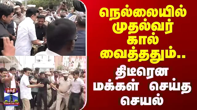 நெல்லையில் முதல்வர் கால் வைத்ததும்..திடீரென மக்கள் செய்த செயல் #mkstalin #cmstalin #nellai #thirunelveli #dmk #kanniyakumari #thanthitv நெல்லையில் முதலமைச்சர் ஸ்டாலின் - உற்சாக வரவேற்பு கன்னியாகுமரி மாவட்டத்தில் இரண்டு நாள் சுற்றுப்பயணமாக வருகை தந்த முதலமைச்சர் ஸ்டாலினுக்கு நெல்லை பாளையங்கோட்டையில் திமுகவினர் உற்சாக வரவேற்பு அளித்தனர்.. அந்த காட்சிகளை காணலாம்..