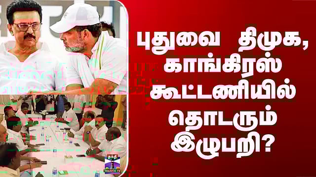 புதுச்சேரி சட்டமன்ற தேர்தலில், திமுக - காங்கிரஸ் கூட்டணிக்கு யார் தலைமை என்பதில் இழுபறி நிலவுவதாக தகவல் வெளியாகி உள்ளது. திமுக, காங்கிரஸ் இடையே புதுச்சேரியில் கூட்டணி பேச்சுவார்த்தை நடைபெற்றது. திமுக எம்.பி., ஜெகத்ரட்சகன் தலைமையிலான குழு பேச்சுவார்த்தைக்கு சற்று தாமதமாக வந்ததாக கூறப்படுகிறது.. இது காங்கிரஸ் தரப்பில் பேச வந்த முன்னாள் முதலமைச்சர் நாராயணசாமி, வைத்தியலிங்கம் எம்.பி., உள்ளிட்டோருக்கு அதிருப்தியை ஏற்படுத்தியதாக சொல்லப்படுகிறது.. பின்னர் பேச்சுவார்த்தை முடிந்த நிலையில் முடிவு குறித்து இருதரப்பும் எந்த தகவலையும் தெரிவிக்கவில்லை