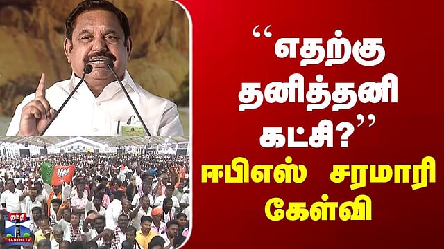 EPS | ADMK | Trichy | "எதற்கு தனித்தனி கட்சி?" | ஈபிஎஸ் சரமாரி கேள்வி #EPS #ADMK #ndaalliance #trichy #TNElection2026 #thanthitv ஒரே கொள்கை என்றால், எதற்கு தனித்தனி கட்சி? - ஈபிஎஸ் திமுக கூட்டணியில் உள்ள அனைத்து கட்சிகளுக்கும் ஒரே கொள்கை என்றால், எதற்கு தனித்தனி கட்சி என்ற கேள்வியை எழுப்பிய எடப்பாடி பழனிசாமி, கொள்கை கூட்டணி என தமிழக மக்களை முதலமைச்சர் ஏமாற்றுவதாகவும் விமர்சித்தார்.