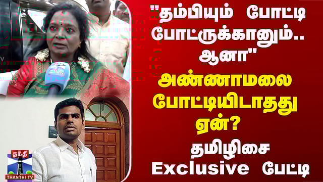 Tamilisai | Annamalai | BJP | அண்ணாமலை போட்டியிடாதது ஏன்..? தமிழிசை Exclusive பேட்டி #TNElections #BJP #Tamilisai #Annamalai அண்ணாமலை தேர்தலில் போட்டியிடாதது குறித்து, பாஜக மூத்த தலைவரும் மயிலாப்பூர் தொகுதி வேட்பாளருமான தமிழிசை சவுந்திரராஜன், தந்தி டிவிக்கு அளித்த பிரத்யேக பேட்டியை பார்க்கலாம்....