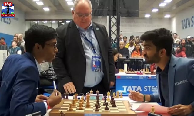 நெதர்லாந்தில் நடைபெற்றுவரும் டாடா ஸ்டீஸ் செஸ் தொடரில் தமிழக கிராண்ட்மாஸ்டர்கள் குகேஷ் - பிரக்ஞானந்தா இடையில் நடைபெற்ற போட்டி சமனில் முடிந்தது. 8வது சுற்றில் உலக சாம்பியன் குகேஷ், பிரக்ஞானந்தாவை எதிர்கொண்டார். வெள்ளை நிற காய்களுடன் பிரக்ஞானந்தாவும் கருப்பு நிற காய்களுடன் குகேஷும் விளையாடிய நிலையில், 33வது நகர்த்தலில் இருவரும் டிரா செய்ய ஒத்துக்கொண்டனர். 8 சுற்றுகளின் முடிவில் குகேஷும் பிரக்ஞானந்தாவும் தலா 5 புள்ளி 5 புள்ளிகளுடன் முதலிடத்தில் நீடிக்கின்றனர்.