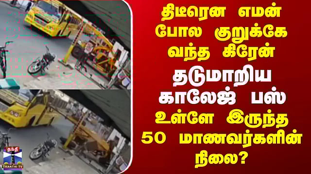 College Bus Accident || திடீரென எமன் போல குறுக்கே வந்த கிரேன்.. தடுமாறிய காலேஜ் பஸ்