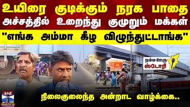உயிரை குடிக்கும் நரக பாதை.. அச்சத்தில் உறைந்து குமுறும் மக்கள் - "எங்க அம்மா கீழ விழுந்துட்டாங்க" நிலைகுலைந்த அன்றாட வாழ்க்கை.. #road #railway #train #peoples #Flyover #tiruvallur #nammaoorustory #thanthitv