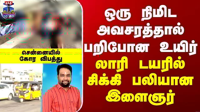 Vada Palani | Chennai | Accident | ஒரு நிமிட அவசரத்தால் பறிபோன உயிர் - லாரி டயரில் சிக்கி பலியான இளைஞர் #chennai #accident #death #thanthitv லாரியை முந்திய போது விபத்து - சக்கரத்தில் சிக்கி இளைஞர் பலி சென்னை வடபழனி அருகே இரும்பு தகடுகளை ஏற்றி வந்த லாரியை முந்தி செல்ல முயன்ற போது, இளைஞர் லாரி சக்கரத்தில் சிக்கி சம்பவ இடத்திலேயே பரிதாபமாக உயிரிழந்தார். சூளைமேடு பாரதியார் தெருவை சேர்ந்தவர் 32 வயதான கோபால் (எ) மோகன கிருஷ்ணன். திமுக இளைஞர் அணி துணை அமைப்பாளராகவும், கார் ஓட்டுநராகவும் பணிபுரிந்து வந்த இவர் அதே பகுதியை சேர்ந்த தனது நண்பர் கேசவன் உடன் பைக்கில் வடபழனி நோக்கி சென்றபோது இந்த விபத்து நிகழ்ந்துள்ளது. விபத்தில் கோபால் உயிரிழந்த நிலையில், அவரது நண்பர் கேசவன் படுகாயங்களுடன் மருத்துவமனையில் அனுமதிக்கப்பட்டுள்ளார். லாரி ஓட்டுனர் சுதாகரை கைது செய்து போலீசார் விசாரணை நடத்தி வருகின்றனர்.