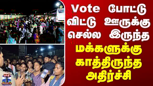 Vote | Bus Issue | Vote போட்டு விட்டு ஊருக்கு செல்ல இருந்த மக்களுக்கு காத்திருந்த அதிர்ச்சி #vote #bus #chennai #viluppuram #thanthitv விழுப்புரத்தில் தேர்தலில் வாக்களித்து விட்டு மீண்டும் பணியியிடங்களுக்கு சென்ற பொதுமக்கள், போதிய பேருந்து வசதி இல்லாததால் நள்ளிரவில் சாலை மறியலில் ஈடுபட்டனர்