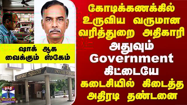 கோடிக்கணக்கில் உருவிய வருமான வரித்துறை அதிகாரி.. அதுவும் Government-கிட்டையே - கடைசியில் கிடைத்த அதிரடி தண்டனை #IncomeTax #Scam #Punishment #police #thanthitv வருமான வரித்துறையில் மோசடி செய்து அரசுக்கு 2 கோடியே 38 லட்சம் ரூபாய் இழப்பீடு ஏற்படுத்திய முன்னாள் வருமான வரித்துறை அதிகாரி மற்றும் தற்போதைய சென்னை காவல்துறை ஆய்வாளர் உட்பட 7 பேருக்கு நான்கு ஆண்டுகள் கடுங்காவல் சிறை தண்டனை வழங்கப்பட்டுள்ளது