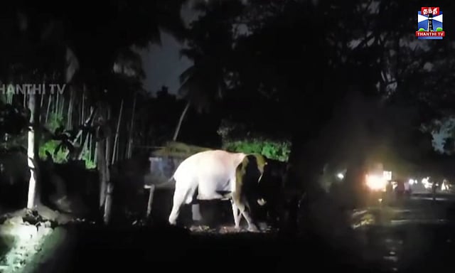 அப்போது பாகுபலி யானையின் உடல் மீது பட்டாசுகள் விழுந்து வெடித்துள்ளது.