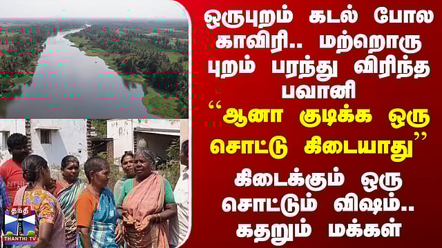 ஒருபுறம் கடல் போல காவிரி.. மற்றொரு புறம் பரந்து விரிந்த பவானி ``ஆனா குடிக்க ஒரு சொட்டு கிடையாது’’ கிடைக்கும் ஒரு சொட்டும் விஷம்.. கதறும் மக்கள் #Bhavani #water #thanthitv பவானி அருகே உள்ள கிராமங்களில் கோடை தொடங்குவதற்கு முன்பே கடுமையான குடிநீர் தட்டுப்பாடு நிலவுகிறது. உப்புத்தன்மை கொண்ட நிலத்தடி நீர் பயன்படுத்த முடியாத நிலையில், அதிகாரிகள் அலட்சியம் காட்டுவதாக கிராம மக்கள் குற்றம்சாட்டுகின்றனர்