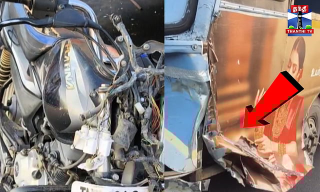 அரசு பேருந்து மீது மோதிய பைக் - வடமாநில இளைஞர்கள் இருவர் பலி