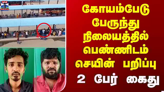 Chennai Chain Snatching |கோயம்பேடு பேருந்து நிலையத்தில் பெண்ணிடம் செயின் பறிப்பு- 2 பேர் கைது #gold #chaintheft #chainsnatching #koyembedubusstand #tnpolice #thanthitv