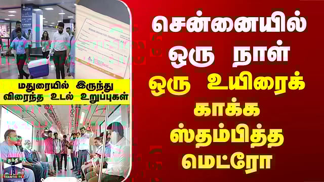 மெட்ரோவில் 9 நிமிடத்தில் கொண்டு செல்லப்பட்ட 'இதயம்' உறுப்பு மாற்று அறுவை சிகிச்சைக்காக தானம் செய்யப்பட்ட நுரையீரல் மற்றும் இதயத்தை குறித்த நேரத்தில் கொண்டு செல்ல சென்னை மெட்ரோ ரயில் சேவை உதவியுள்ளது. மதுரையில் இருந்து ஏர் ஆம்புலன்ஸ் மூலம் தானம் செய்யப்பட்ட உடல் உறுப்புகளைக் கொண்டு வந்த மருத்துவ குழுவினர், சென்னை விமான நிலையத்திலிருந்து மீனாம்பாக்கம் மெட்ரோ நிலையத்தை வந்தடைந்தனர். அங்கு அவர்களுக்காக ஏற்பாடு செய்யப்பட்ட சிறப்பு மெட்ரோ ரயில், எந்த இடைநிலையங்களிலும் நிற்காமல் 7 நிலையங்களை 9 நிமிடங்களில் கடந்து ஏஜி-டிஎம்எஸ் நிலையத்தை சென்றடைந்தது. பிறகு அங்கிருந்து, உடனடியாக ஆம்புலன்ஸ் மூலம் க்ரீம்ஸ் சாலையில் உள்ள அப்பல்லோ மருத்துவமனைக்கு அவர்கள் விரைந்ததையடுத்து, அங்கு உறுப்பு மாற்று அறுவை சிகிச்சை நடைபெற்றது