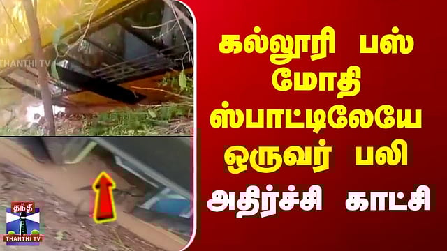 கல்லூரி பஸ் மோதி ஸ்பாட்டிலேயே ஒருவர் பலி - அதிர்ச்சி காட்சி #collegebus #acidente #thanthitv #ramanathapuram கல்லூரி பேருந்து மோதி தனியார் நிறுவன ஊழியர் பலி - ஓட்டுநர் கைது ராமநாதபுரம் மாவட்டம் முதுகுளத்தூர் அருகே தனியார் கல்லூரி பேருந்து மோதி, இருசக்கர வாகன ஓட்டி பரிதாபமாக உயிரிழந்துள்ளார்... தனியார் கல்லூரி பேருந்து எதிரே வந்த இருசக்கர வாகனத்தின் மீது நேருக்கு நேர் மோதி விபத்து ஏற்பட்டது. இதில் இருசக்கர வாகனத்தை ஓட்டி வந்த நெடியமாணிக்கம் கிராமத்தைச் சேர்ந்த மருதுபாண்டி என்பவர் சம்பவ இடத்திலேயே உயிரிழந்தார். விபத்தைத் தொடர்ந்து கட்டுப்பாட்டை இழந்த கல்லூரி பேருந்து அருகில் உள்ள பண்ணை குட்டைக்குள் புகுந்தது. விபத்து தொடர்பாக பேருந்து ஓட்டுநரான கருமல் கிராமத்தைச் சேர்ந்த ராஜா என்பவரை கைது செய்து செய்த கீழத்தூவல் போலீசார் வழக்குப்பதிந்து விசாரித்து வருகின்றனர்...