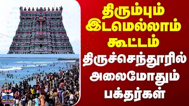 திரும்பும் இடமெல்லாம் கூட்டம்.. திருச்செந்தூரில் அலைமோதும் பக்தர்கள் #thiruchendur #thiruchendurmurugan #temple #thanthitv திருச்செந்தூர் சுப்பிரமணிய சுவாமி கோவிலில் அலைமோதும் பக்தர்கள் கூட்டம் கோடை விடுமுறை தொடங்கியுள்ள நிலையில், திருச்செந்தூர் சுப்பிரமணிய சுவாமி கோவிலுக்கு வருகை தரும் பக்தர்களின் எண்ணிக்கை கணிசமாக அதிகரித்துள்ளது. பக்தர்கள் நீண்ட வரிசையில் காத்திருந்து சுவாமி தரிசனம் செய்து வருகின்றனர்.