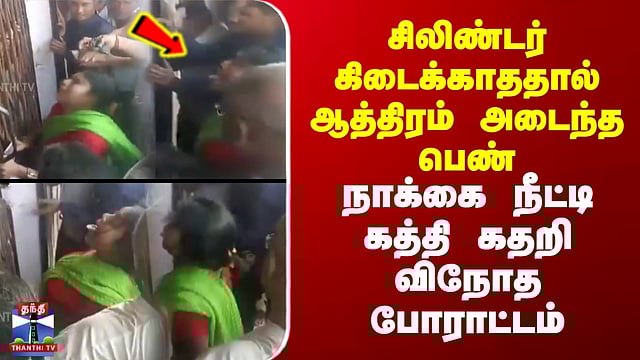 மத்திய பிரதேச மாநிலத்தில் எரிவாயு சிலிண்டர் கிடைக்காததால், ஆத்திரமடைந்த பெண் கேஸ் ஏஜென்சி முன்பு விநோத போராட்டத்தில் ஈடுபட்டார். மொரெனா பகுதியில் சிலிண்டர் பெற பொதுமக்கள் நீண்ட வரிசையில் காத்திருந்த நிலையில், ஏஜென்சி கதவுகள் மூடப்பட்டதால் அந்த பெண்ணுக்கு சிலிண்டர் வழங்கப்படவில்லை. இதனால் ஆத்திரமடைந்த அவர் நாக்கை நீட்டி கத்திக் கூப்பாடு போட்டும் அழுதும் தனது எதிர்ப்பை வெளிப்படுத்தினார்.
