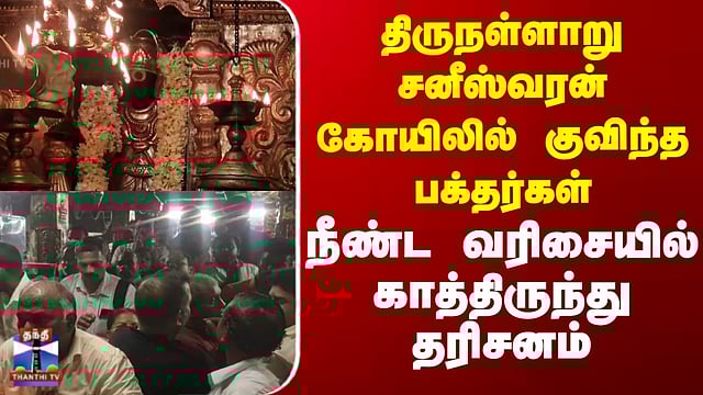 திருநள்ளாறு சனீஸ்வரர் கோவிலில் குவிந்த பக்தர்கள்... திருநள்ளாறு சனீஸ்வர பகவான் கோயிலில் பக்தர்கள் கூட்டம் அலைமோதுகிறது
