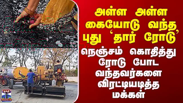தரமற்ற தார் சாலை அமைக்கப்படுவதாக மக்கள் குற்றச்சாட்டு தர்மபுரி மாவட்டம் தொட்டம்பட்டி கிராமத்தில் புதிதாக போடப்பட்ட தார் சாலை, ஒரே நாளில் கையோடு பெயர்ந்து வந்ததால் ஆத்திரமடைந்த கிராம மக்கள், சாலை அமைக்கும் பணிகளில் ஈடுபட்ட வாகனங்களை விரட்டி அடித்தனர். இப்பகுதியில் 7 ஆண்டுகளுக்கு பிறகு, சுமார் ஒன்றரை கோடி ரூபாய் மதிப்பில் புதிய தார் சாலை அமைக்கும் பணி தொடங்கப்பட்டது. ஆனால், பழுதடைந்திருந்த சாலையை தோண்டி ஜல்லிகளை கொட்டி, புதிய சாலை அமைக்காமல், பழைய சாலையின் மேல் தரமற்ற முறையில் தார்சாலை அமைக்கப்பட்டதாகக் கூறப்படுகிறது. இதனால் ஆத்திரமடைந்த பொதுமக்கள், தார் சாலையை வெறும் கைகளால் பெயர்த்து எடுத்து வாக்குவாதத்தில் ஈடுபட்டனர்.