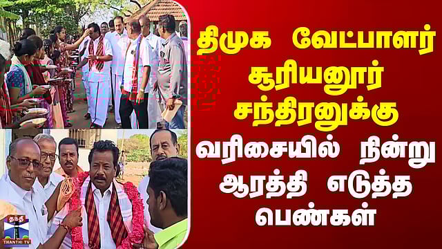 DMK Kulithalai | திமுக வேட்பாளர் சூரியனூர் சந்திரனுக்கு வரிசையில் நின்று ஆரத்தி எடுத்த பெண்கள்