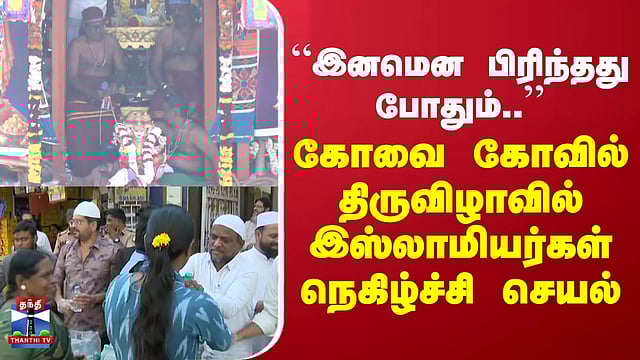 “இனமென பிரிந்தது போதும்..'' கோவை கோவில் திருவிழாவில் இஸ்லாமியர்கள் நெகிழ்ச்சி செயல் #festival #Muslims #Coimbatore #thanthitv மதம் கடந்த மனிதநேயம்- தேரோட்டத்தில் நெகிழ்ச்சி சம்பவம் கோவையின் காவல் தெய்வமான, கோனியம்மன் கோவில் தேர்த் திருவிழாவில் சாதி, மத எல்லைகளைக் கடந்து, பக்தர்களுக்கு இஸ்லாமியர்கள் குடிநீர் வழங்கி தாகம் தீர்த்தனர்.