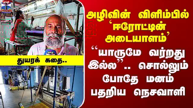 Erode Handloom | ``புதுசா யாருமே வர்றது இல்ல’’.. சொல்லும் போதே மனம் பதறிய நெசவாளி கைத்தறி நெசவு தொழில், தற்போது வரலாறு காணாத கடும் நெருக்கடியை எதிர்கொண்டு வரும் நிலையில் தங்கள் வாழ்வாதாரத்திற்காக அரசு உதவ முன்வர வேண்டும் என நெசவாளர்கள் கோரிக்கை முன்வைத்துள்ளனர்.