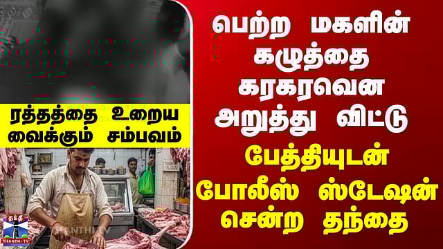 #Salem | #Murder | #MurderMystery | #Crime | #TNpolice | #ThanthiTV Salem Murder | பெற்ற மகளின் கழுத்தை கரகரவென அறுத்து விட்டு ரத்தத்துடன் போலீஸ் ஸ்டேஷன் சென்ற தந்தை - சேலத்தில் பகீர் சம்பவம் சேலம் அருகே மகளின் நடத்தையில் சந்தேகப்பட்டு பெற்ற தகப்பனே கழுத்தை அறுத்து கொலை செய்தது பதைபதைக்க வைத்துள்ளது. சேலம் மாவட்டம் வாழப்பாடி அருகே, நடத்தையில் ஏற்பட்ட சந்தேகத்தால், பெற்ற மகளையே, தந்தை கழுத்தை அறுத்து கொலை செய்த சம்பவம் பெரும் அதிர்ச்சியை ஏற்படுத்தியுள்ளது. வாழப்பாடி அடுத்த அத்தனூர்பட்டி கிராமத்தைச் சேர்ந்த செல்வராஜ் என்பவர், பகுதி நேரமாக கசாப்புக் கடைகளில் ஆடுகளை வெட்டும் தொழிலாளியாக பணியாற்றி வந்துள்ளார். இவரது மகள் பிரத்யங்கிராதேவிக்கு இரண்டு ஆண்டுகளுக்கு முன்பு கண்ணன் என்பவருடன் திருமணமாகி, ஒரு வயது பெண் குழந்தை உள்ளது. பிரத்யங்கராதேவியின் கணவர் கண்ணன் சேலத்திலேயே தங்கி வேலை செய்து வரும் நிலையில், பிரத்யங்கராதேவி அவ்வப்போது சேலத்திற்கு சென்று கணவரை பார்த்துவிட்டு வந்ததாக கூறப்படுகிறது. ஆனால், மகளின் நடத்தையில் சந்தேகம் அடைந்த செல்வராஜ், அவரை வீட்டிற்கு வரவழைத்து ஆடு அறுக்க பயன்படுத்தும் கத்தியால் கழுத்தை அறுத்து கொடூரமாக கொலை செய்துள்ளார். பின்னர், பேத்தி உடன் சென்று வாழப்பாடி காவல் நிலையத்தில் சரணடைந்துள்ளார்.