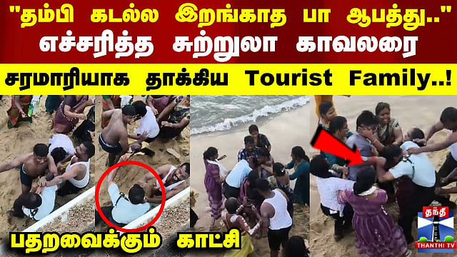 Fight | "தம்பி கடல்ல இறங்காத பா ஆபத்து"எச்சரித்த சுற்றுலா காவலரை சரமாரியாக தாக்கிய Tourist Family