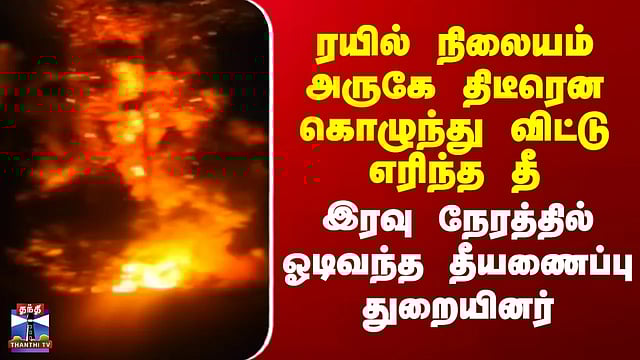 Fire | ரயில் நிலையம் அருகே கொழுந்து விட்டு எரிந்த தீ -இரவு நேரத்தில் ஓடிவந்த தீயணைப்பு துறையினர்