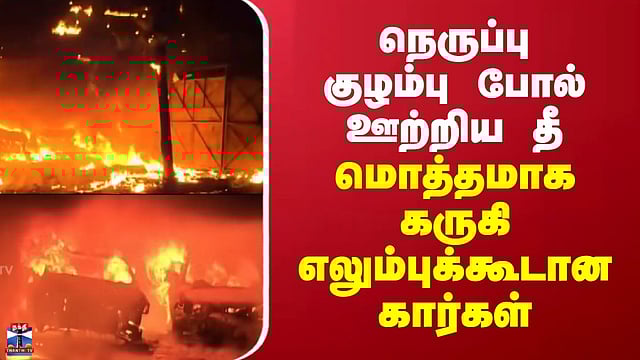 நெருப்பு குழம்பு போல் ஊற்றிய தீ.. மொத்தமாக கருகி எலும்புக்கூடான கார்கள்