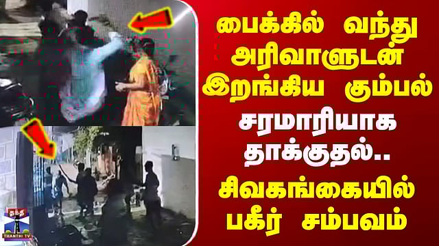 #Sivagangai | #Drunk | #Attack | #CCTV | #ThanthiTV Sivagangai | பைக்கில் வந்து அரிவாளுடன் இறங்கிய கும்பல் - சரமாரியாக தாக்குதல்.. சிவகங்கையில் பகீர் சம்பவம் சிவகங்கை மாவட்டம் மானாமதுரை அருகே இடைக்காட்டூர் பகுதியில் அரிவாளுடன் வாகனங்களில் வந்த கும்பல் தாக்குதல் நடத்திய சம்பவம் பரபரப்பை ஏற்படுத்தியுள்ளது.. முத்தநேந்தல் பகுதியில் உள்ள டாஸ்மாக் கடையில் மது அருந்தியபோது, இடைக்காட்டூர் கிராமத்தை சேர்ந்த மகேஷ் மற்றும் பாண்டியராஜன் இடையே வாக்குவாதம் ஏற்பட்டதாக கூறப்படுகிறது. பின்னர் மகேஷ் தனது நண்பர்களுடன் இருசக்கர வாகனங்களில் அரிவாள் உள்ளிட்ட ஆயுதங்களுடன் கிராமத்துக்குள் வந்ததாக கூறப்படுகிறது. அப்போது அவர்களை வழிமறித்து கேட்ட ராசு என்பவர் மீது தாக்குதல் நடத்தப்பட்டதாக கூறப்படுகிறது. இதில், தடுக்க முயன்ற மேலும் மூவரும் காயமடைந்துள்ளனர். இதையடுத்து ராசு அளித்த புகாரின் அடிப்படையில் வன்கொடுமை தடுப்பு சட்டத்தின் கீழ் காவல்துறையினர் வழக்குப் பதிவு செய்து விசாரணை நடத்தி வருகின்றனர்.