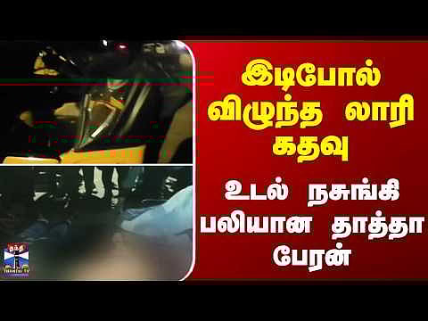 Kanchipuram | இடிபோல் விழுந்த லாரி கதவு உடல் நசுங்கி பலியான தாத்தா பேரன்