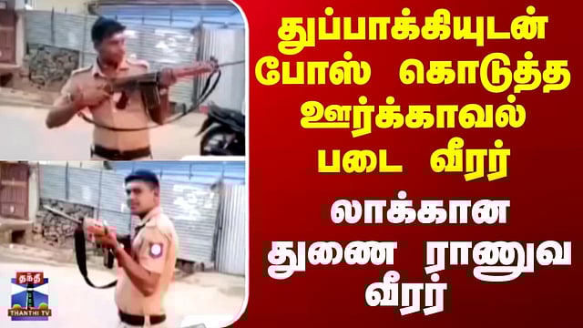 துப்பாக்கியுடன் போஸ் கொடுத்த ஊர்க்காவல் படை வீரர்.. லாக்கான துணை ராணுவ வீரர்