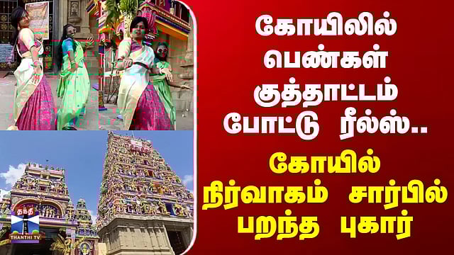 ரீல்ஸ் செய்த பெண்கள் மீது போலீஸில் புகார் "தூத்துக்குடி மாவட்டம் கோவில்பட்டியில் உள்ள புகழ்பெற்ற செண்பகவல்லி அம்மன் கோயில் கோபுரம் மற்றும் வாசல் முன்பு, இரண்டு பெண்கள் சினிமா பாடலுக்குக் குத்தாட்டம் போட்டு இன்ஸ்டாகிராமில் ரீல்ஸ் வெளியிட்ட சம்பவம் பெரும் சர்ச்சையை ஏற்படுத்தியுள்ளது. அது தொடர்பான காட்சிகளை பார்க்கலாம்...