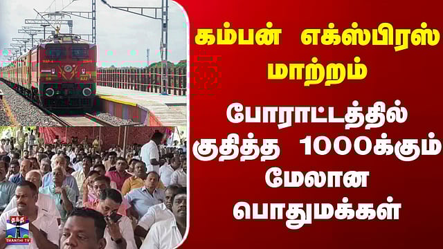 Protest | Thiruvarur | கம்பன் எக்ஸ்பிரஸ் மாற்றம் - போராட்டத்தில் குதித்த 1000க்கும் மேலான பொதுமக்கள் #thiruvarur #KambanExpress #protest #railways #thanthitv கம்பன் ரயில் சேவையை தடம் மாற்றியதை கண்டித்து திருவாரூரில் வணிகர்கள் அனைத்து கட்சியினர் என 1000க்கும் மேற்பட்டோர் உண்ணாவிரத போராட்டம் நடத்தி வருகின்றனர். காரைக்காலில் இருந்து திருவாரூர் வழியாக சென்னைக்கு இயக்கப்பட்ட கம்பன் ரயில் வழித்தடத்தை மாற்றி ரயில்வே அறிவிப்பு வெளியிட்டது. இதனால் ரயில் திருவாரூர் ரயில் நிலையம் வராது என்பதால், திருவாரூரை சேர்ந்த பயணிகள் அவதி அடைந்துள்ளனர். திருவாரூரில் இருந்து பல்வேறு மாவட்டங்கள் மற்றும் மாநிலங்களுக்கு பயணம் செய்யும் பொதுமக்கள், மற்றும் வர்த்தகர்கள் என பல்வேறு தரப்பினரும் பெருமளவில் பயன்படுத்தி வரும் கம்பன் ரயில் சேவையை தொடர்ந்து திருவாரூருக்கு இயக்க வேண்டும் என வலியுறுத்தி திருவாரூர் புதிய ரயில் நிலைய முன்பாக வர்த்தகர்கள் அனைத்துக் கட்சிகளை சேர்ந்தவர்கள் மற்றும் அனைத்து சேவை சங்கத்தினர் என ஆயிரத்திற்கும் மேற்பட்டோர் உண்ணாவிரத போராட்டத்தில் ஈடுபட்டுள்ளனர்.