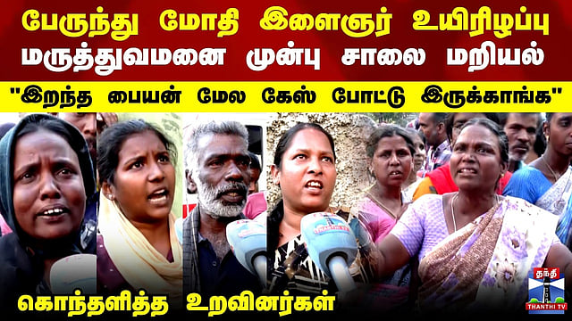 பேருந்து மோதி இளைஞர் உயிரிழப்பு.. மருத்துவமனை முன்பு சாலை மறியல்