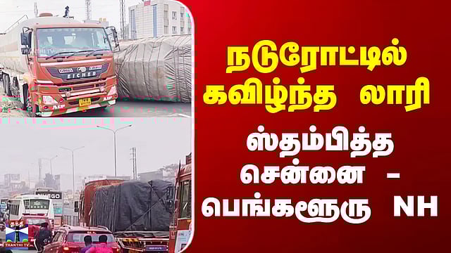 ஓசூர் அருகே தேசிய நெடுஞ்சாலையில் கவிழ்ந்த கனரக லாரியால் கடும் போக்குவரத்து நெரிசல் ஏற்பட்டுள்ளது. சீதாராம் நகர் பகுதி சென்னை - பெங்களூர் தேசிய நெடுஞ்சாலையில் ஒசூர் நோக்கி சென்ற கனரக லாரி ஓட்டுநரின் கட்டுப்பாட்டை இழந்து கவிழ்ந்தது. இந்த விபத்தில் காயமடைந்த லாரி ஓட்டுநர் அரசு மருத்துவமனையில் சிகிச்சைக்காக அனுமதிக்கப்பட்டுள்ளார். சாலையின் குறுக்கே விழுந்த கனரக லாரி மீட்கப்படாததால் வாகன ஓட்டிகள் பெரும் சிரமத்திற்கு ஆளாகி உள்ளனர். வாகனங்கள் பல கிலோ மீட்டர் தூரத்தில் அணிவகுத்து நிற்பதால் கவிழ்ந்து கிடக்கும் லாரியை விரைந்து மீட்க கோரிக்கை விடுத்துள்ளனர்.