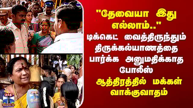 மதுரை மீனாட்சி அம்மன் திருக்கல்யாணத்தை காண பணம் கொடுத்து டிக்கெட் பெற்றும், உள்ளே அனுமதிக்கப்படாததால் பொதுமக்கள் அதிகாரிகளுடன் வாக்குவாதத்தில் ஈடுபட்டனர்... திருக்கல்யாணத்தைக் காண, அறநிலையத்துறை சார்பில் 200 மற்றும் 500 ரூபாய்க்கு ஆன்லைன் மூலம் பாஸ்கள் வழங்கப்பட்டன. இதைப் பெற்ற ஆயிரக்கணக்கான பக்தர்கள் அதிகாலை முதலே காத்திருந்தனர். ஆனால், இருக்கை வசதியை விடக் கூடுதலாக பாஸ்கள் வழங்கப்பட்டதாகக் கூறி, கையில் டிக்கெட் வைத்திருந்த பலரையும் போலீசார் உள்ளே அனுமதிக்கவில்லை. இதனால் ஆத்திரமடைந்த பொதுமக்கள், தங்களை ஏன் அனுமதிக்கவில்லை எனக் கேட்டு அதிகாரிகளிடம் கடும் வாக்குவாதத்தில் ஈடுபட்டனர். மேலும், தரிசனம் செய்ய முடியாததால் பாஸ் வாங்க செலுத்திய பணத்தைத் திருப்பி வழங்க வேண்டும் என்றும் அவர்கள் கோரிக்கை விடுத்துள்ளனர்....