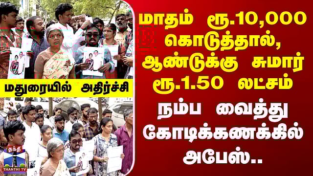 #Madurai | #ChitFund | #Forgery | #TNPolice | #ThanthiTV Madurai | மாதம் ரூ.10,000 கொடுத்தால், ஆண்டுக்கு சுமார் ரூ.1.50 லட்சம் - நம்ப வைத்து கோடிக்கணக்கில் அபேஸ்.. மதுரையில் அதிர்ச்சி மதுரையில் நூறாண்டு பழமையான ஜவுளிக்கடை பெயரை பயன்படுத்தி, வாடிக்கையாளர்களிடம் கோடிக்கணக்கில் மோசடி செய்ததாக கணவன்-மனைவி மீது குற்றச்சாட்டு எழுந்துள்ளது. மதுரை கீழமாசி வீதியைச் சேர்ந்த அருண்லால் என்பவர், SRB என்ற பெயரில் ஜவுளிக்கடை உள்ளிட்ட பல்வேறு கடைகளை நடத்தி வந்தார். இவர் தனது மனைவி அனிதா லாலுடன் இணைந்து, கடைக்கு வரும் வாடிக்கையாளர்களிடம் மாதம் 10 ஆயிரம் ரூபாய் செலுத்தினால், ஆண்டு முடிவில் 1 லட்சத்து 41 ஆயிரம் ரூபாய் வழங்குவதாக கூறி, சுமார் 55 கோடி ரூபாய் வரை வசூலித்ததாக தெரிகிறது. பணத்தை திருப்பிக் கேட்டபோது, பவுன்ஸ் ஆன காசோலைகளை வழங்குவது, வழக்கறிஞர்களை வைத்து மிரட்டுவது போன்ற செயல்களில் ஈடுபட்டதாக கூறப்படுகிறது. இதையடுத்து, அருண்லால் குடும்பத்துடன் தலைமறைவான நிலையில், ஏமாற்றமடைந்த வாடிக்கையாளர்கள் SRB ஜவுளி கடையை முற்றுகையிட்டனர். மேலும், அருண்லாலிடமிருந்து தங்களது பணத்தை மீட்டுத்தர, அரசு நடவடிக்கை எடுக்க வேண்டும் என பாதிக்கப்பட்டவர்கள் கோரிக்கை விடுத்துள்ளனர்.