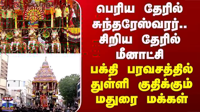 பெரிய தேரில் சுந்தரேஸ்வரர்.. சிறிய தேரில் மீனாட்சி - பக்தி பரவசத்தில் துள்ளி குதிக்கும் மதுரை மக்கள்
