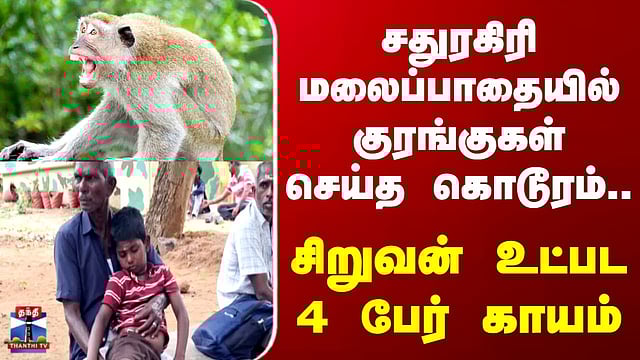 சதுரகிரி மலைப்பாதையில் குரங்குகள் செய்த கொடூரம்.. சிறுவன் உட்பட 4 பேர் காயம் #sathuragiri சதுரகிரி மலைப்பாதையில் குரங்குகள் கடித்து சிறுவன் உட்பட 4 பேர் காயம் விருதுநகர் மாவட்டம் சதுரகிரி மலைப்பாதையில் குரங்குகள் கடித்து சிறுவன் உட்பட 4 பேர் காயமடைந்த நிலையில் மருத்துவ முகாம் இல்லாததால் பக்தர்கள் பெரும் சிரமத்திற்கு ஆளாகி உள்ளனர்...