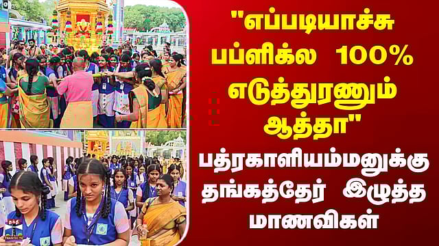 Public Exams | "பப்ளிக்ல 100% எடுத்துரணும்" - பத்ரகாளியம்மனுக்கு தங்கத்தேர் இழுத்து வேண்டிய மாணவிகள் #students #girls #pathrakaliammantemple #thanthitv தேர்ச்சி பெற வேண்டி தங்கத்தேர் இழுத்த தனியார் பள்ளி மாணவிகள் பொதுத்தேர்வில் நூறு சதவீத தேர்ச்சி பெற வேண்டி சிவகாசியில் உள்ள பத்ரகாளியம்மன் கோயிலில் தனியார் பள்ளி மாணவிகள் தங்க தேர் இழுத்து வழிபாடு நடத்தினர்.