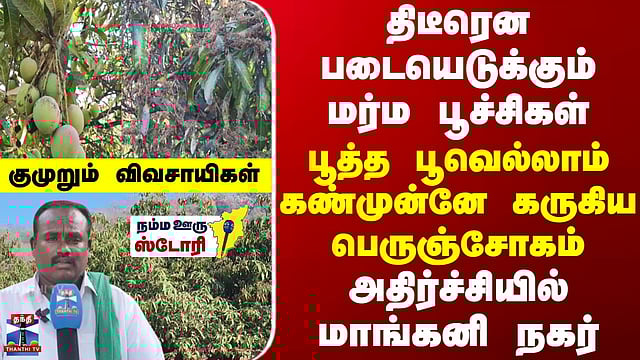 திடீரென படையெடுக்கும் மர்ம பூச்சிகள் - பூத்த பூவெல்லாம் கண்முன்னே கருகிய பெருஞ்சோகம் போச்சம்பள்ளி அருகே பூச்சித் தாக்குதலின் காரணமாக மா சாகுபடி பாதிக்கப்பட்டதால், விவசாயிகளின் வாழ்வாதாரம் பெருமளவு பாதிக்கப்பட்டுள்ளது. கிருஷ்ணகிரி மாவட்டம் போச்சம்பள்ளி மற்றும் அதன் சுற்றுவட்டாரப் பகுதிகள் மாம்பழம் மற்றும் மாங்காய்க்கு மிகவும் பிரசித்தி பெற்ற ஒரு இடமாகும். இந்த பகுதி முழுவதும் மா மரங்கள் ஏராளமாக விவசாயம் செய்யப்படுகிறது. மேலும் இப்பகுதிக்கு வரும் சுற்றுலா பயணிகள் பெரும்பாலும் இங்கிருந்து மாம்பழங்களை வாங்கி செல்கின்றனர். போச்சம்பள்ளியை சுற்றியுள்ள வேலம்பட்டி, அரசம்பட்டி, புலியூர், மத்தூர், தாதம்பட்டி, சந்தூர் உள்ளிட்ட பகுதிகளில், மா சாகுபடி ஆயிரக்கணக்கான ஏக்கரில் செய்யப்பட்டுள்ளன. தற்போது மா மரங்கள் காய் காய்க்கும் பருவத்தில் இருப்பதால், விவசாயிகள் மிகுந்த எதிர்பார்ப்புடன் காத்திருந்தனர். ஆனால், திடீரென யாரும் எதிர்பாராத விதமாக தத்துப்பூச்சி மற்றும் கருப்பு வண்டு போன்ற பூச்சிகளின் தாக்குல் ஏற்பட்டு, பிஞ்சுகள் உதிர்ந்தும், கருகியும் வருகின்றன. இந்த மர்மப் பூச்சிகளின் படையெடுப்பால் மா விவசாயிகள் கடும் நஷ்டத்தை சந்தித்து வருகின்றனர்.
