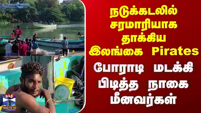 தமிழக மீனவர்களை தாக்கிய இலங்கை கடற்கொள்ளையரை நடு கடலில் மடக்கி பிடித்த மீனவர்கள் தமிழக மீனவர்கள் மீது நடு கடலில் தாக்குதல் நடத்திய இலங்கை கடற்கொள்ளையரை, நாகை மீனவர்கள் மடக்கி பிடித்து கரைக்கு கொண்டு வந்த சம்பவம் பெரும் பரபரப்பை ஏற்படுத்தியுள்ளது.