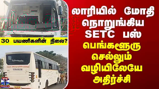 நாமக்கல் மாவட்டம் ராசிபுரம் அருகே லாரி மீது அரசுப்பேருந்து மோதிய விபத்தில் 5 பயணிகள் படுகாயம் அடைந்துள்ளனர். தேசிய நெடுஞ்சாலையில் தூத்துகுடியிலிருந்து 30-க்கும் மேற்பட்ட பயணிகளுடன் பெங்களூர் நோக்கி சென்ற அரசுபேருந்து முன்னாள் சென்ற லாரி மீது மோதி விபத்தில் சிக்கியது. இந்த லிபத்தில் பெண் உட்பட 5 பேர் படுகாயம்அடைந்த நிலையில், உடனடியாக மீட்கப்பட்டு ராசிபுரம் அரசுமருத்துவமனையில் அனுமதிக்கபபட்டனர். விபத்து குறித்து வழக்குப்திந்த வெண்ணந்தூர் காவல்துறையினர் விசாரணை மேற்கொண்டு வருகின்றனர்.
